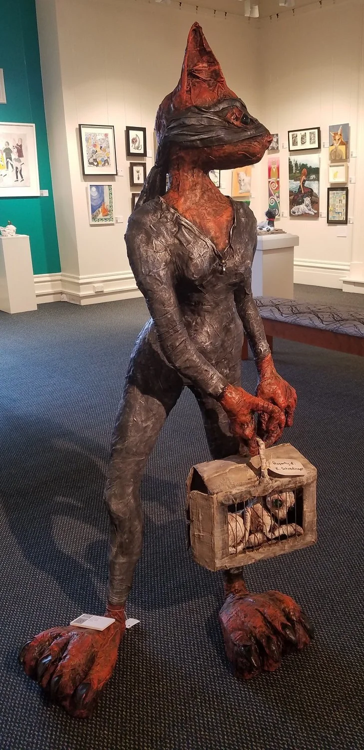 I began working with paper Mache around 2015. I was searching for a school project and remembered a guy Dan Reeder, from years ago who published a book on Paper Mache monsters. ( My mother and myself had made a few of these creations when I was in my 20’s) I looked him up online and saw he had moved into dragons. After working on the school project, I became fascinated in making dragons, masks and monsters and, of course made about a million of them!