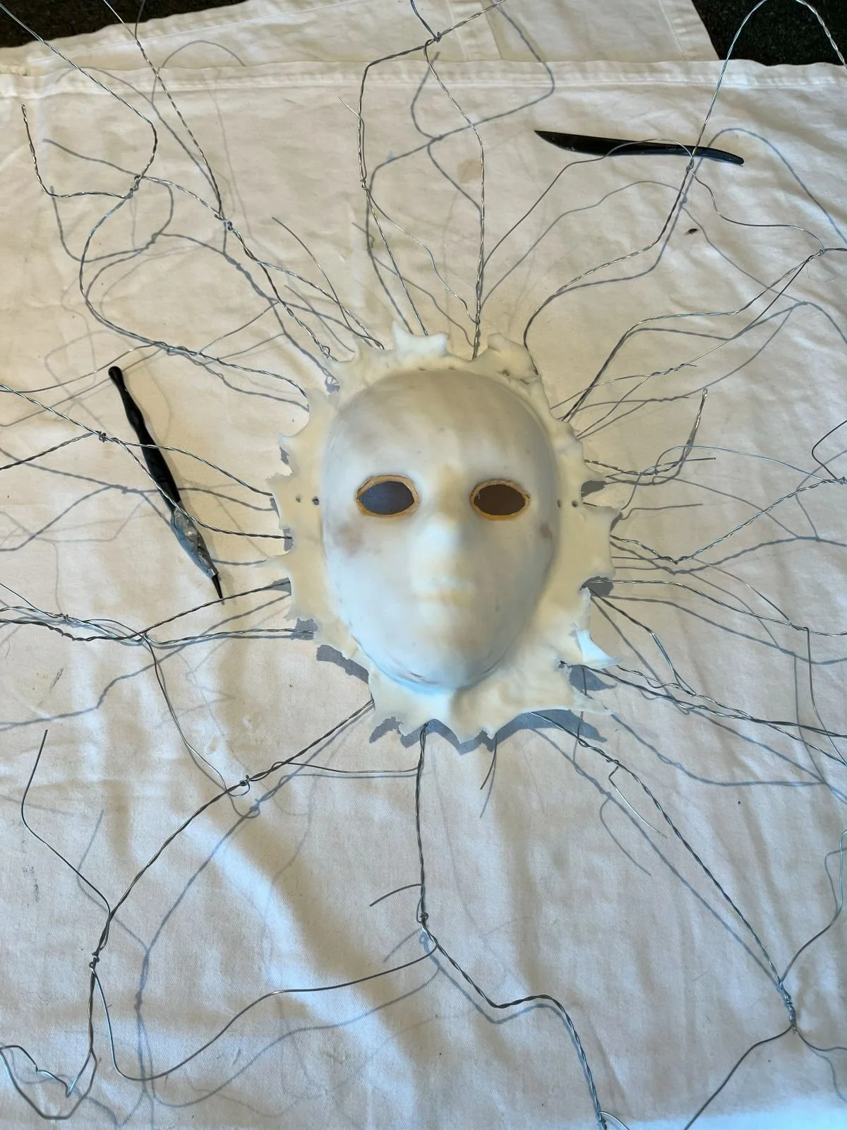 While I’d been making smaller masks, I’d been turning the idea around in my head, imagining the technicalities of joining things together and how big I could get with it still holding its shape. I thought to make the mask shape first and then add the extensions.