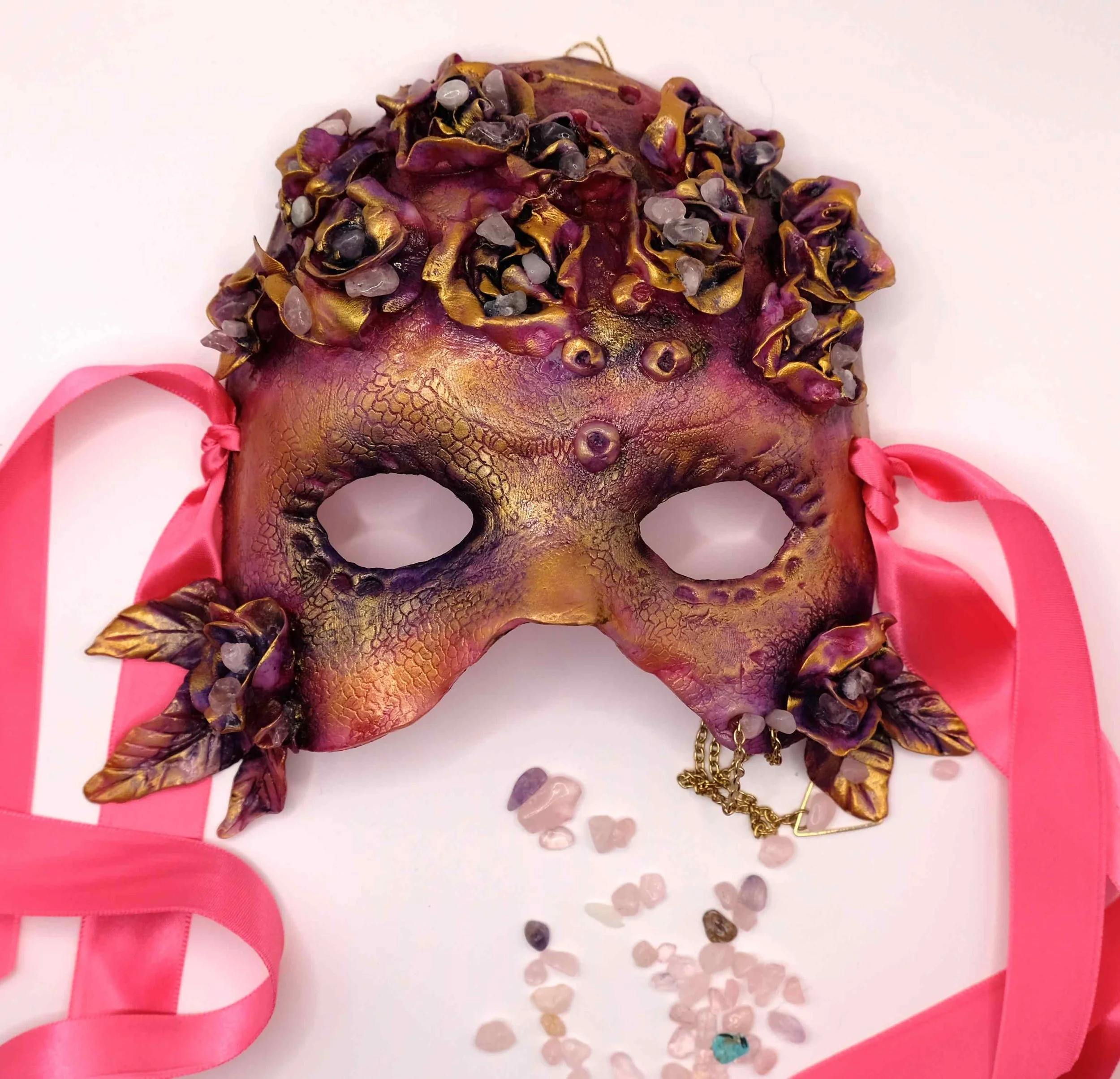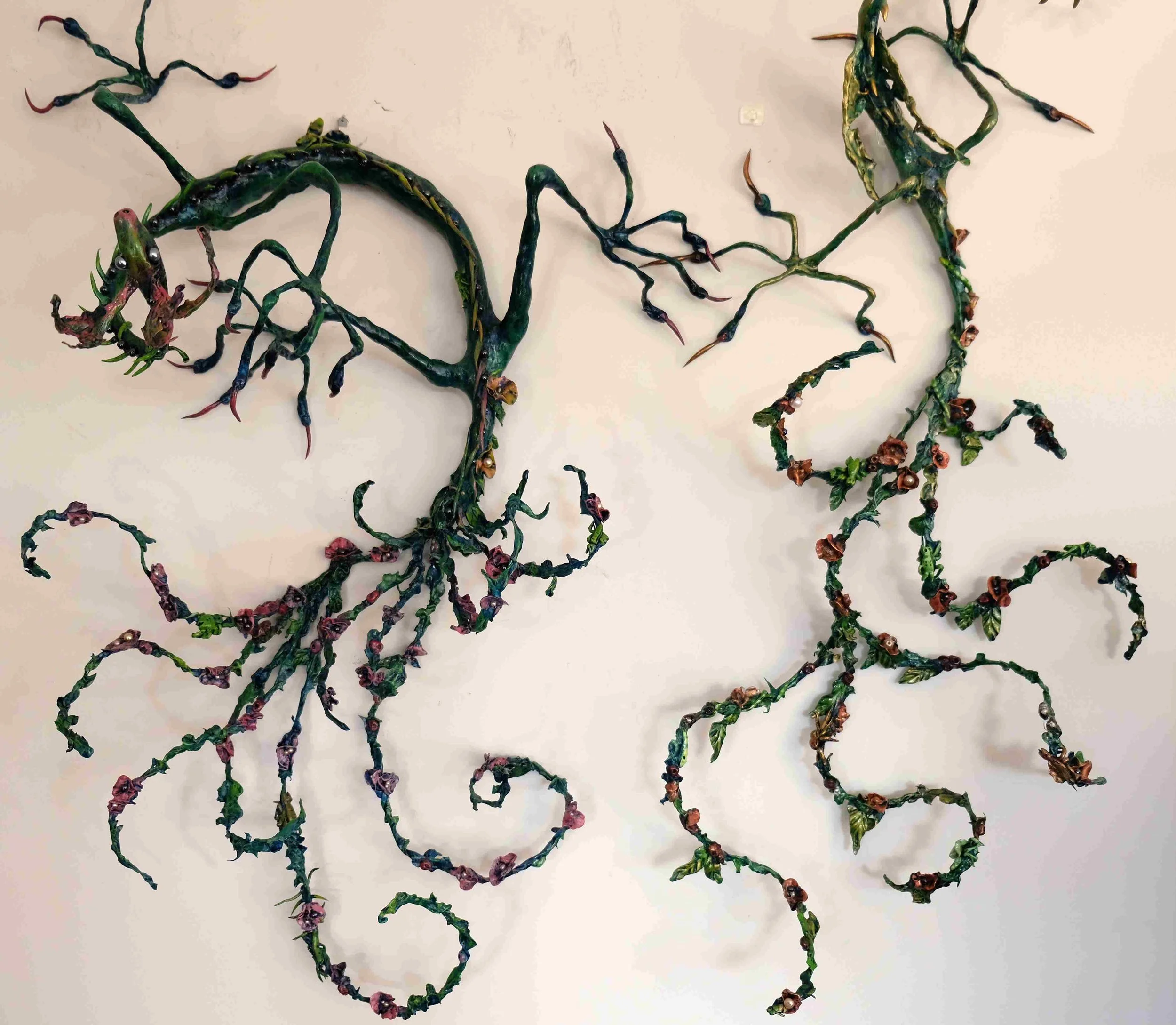 I decided to make the extensions in a circular shape attached to the mask at the front, then work outwards with the clay, creating leaves and flowers.