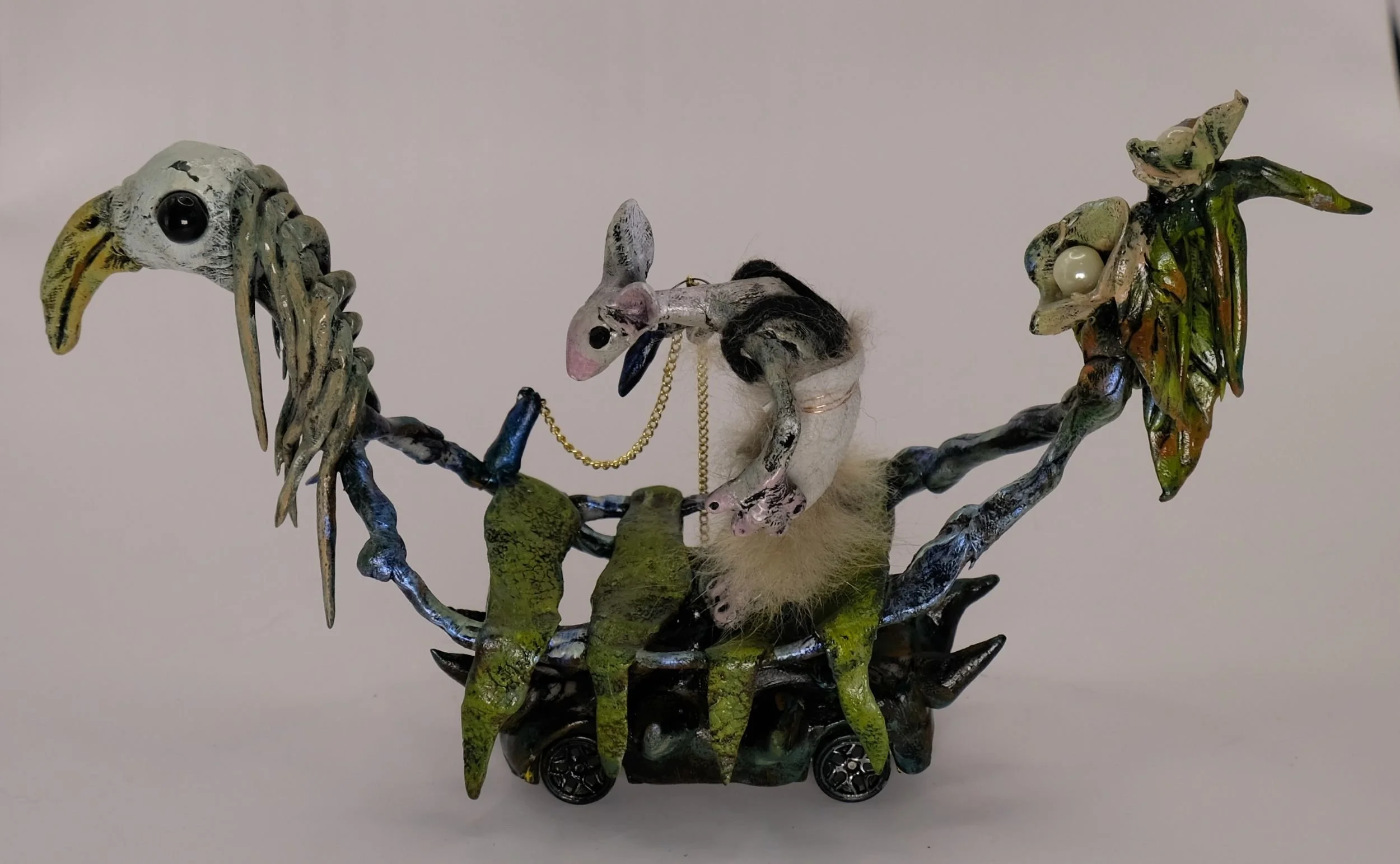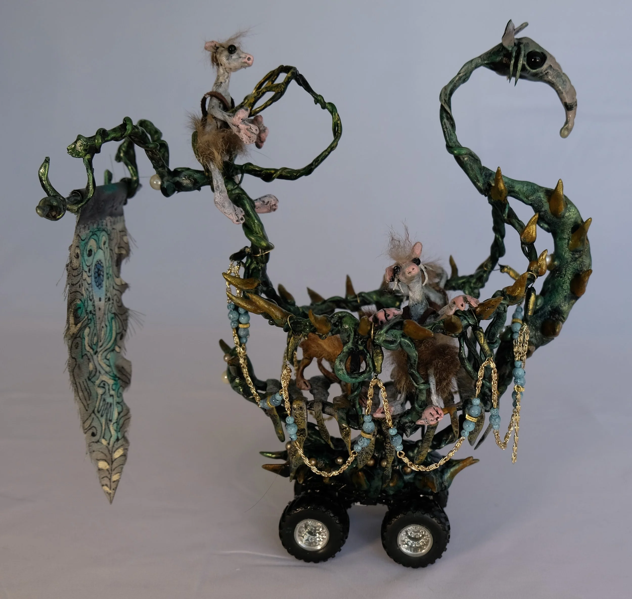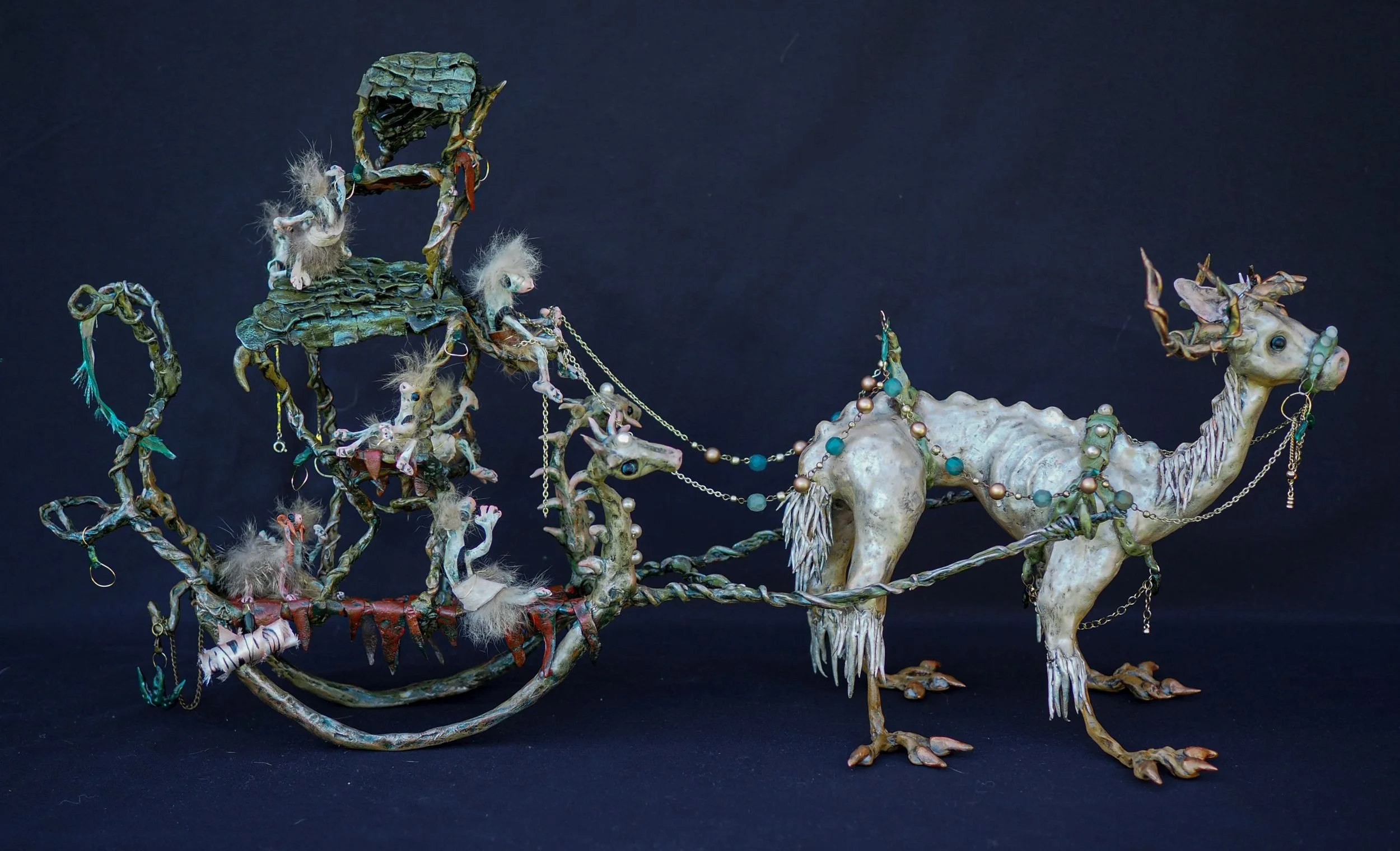 Alongside the ‘Wheelies’, I’ve been making more of my animals with little structure on their backs, there’s still more happening in this theme, and I want to make another larger one with a carriage. Also, I’m getting a glimmer of an idea around Buba Yaga (always like the idea of a house on chicken legs!)