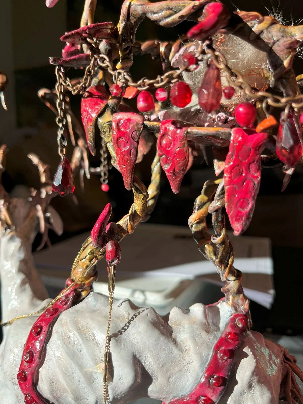 There are 5 stages to these larger pieces, the structural stuff (where a lot of the thinking happens), the clay, underpainting, topcoats and finishing. At each stage I’m visualizing the finished piece, hazy at first and at each stage the choices I make change and sharpen that picture in my head. It’s that process I find so engaging, I’m exploring the idea while working on it.