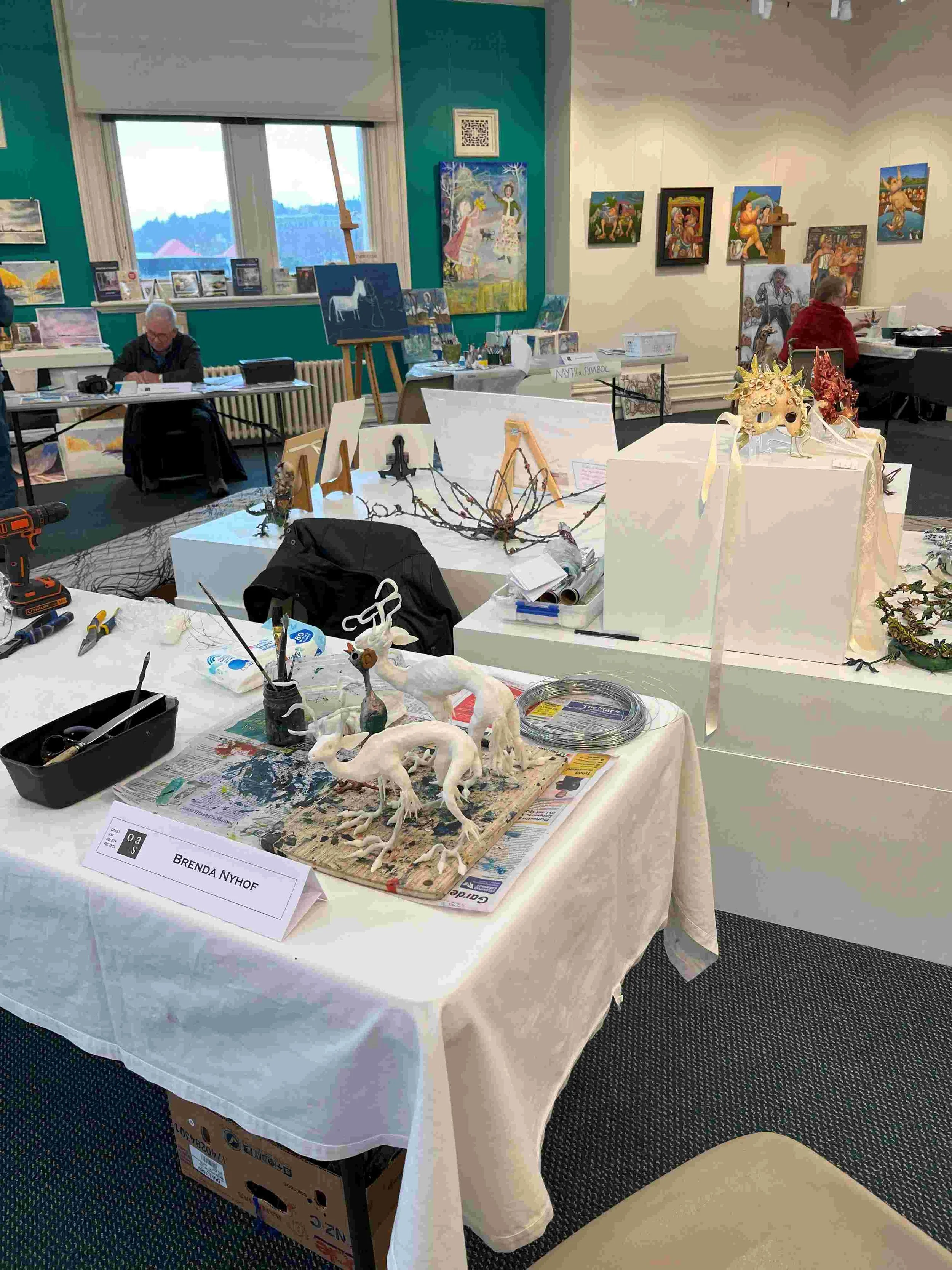 So, I sprang into action. The Otago Art Society has a group of members that come in on a Thursday to work together, so feeling the need for some arty company, I gathered up my wire, cutters, clay and all the associated bits and pieces (I don’t travel lightly, I just know the tool I forget is the very one I will want)