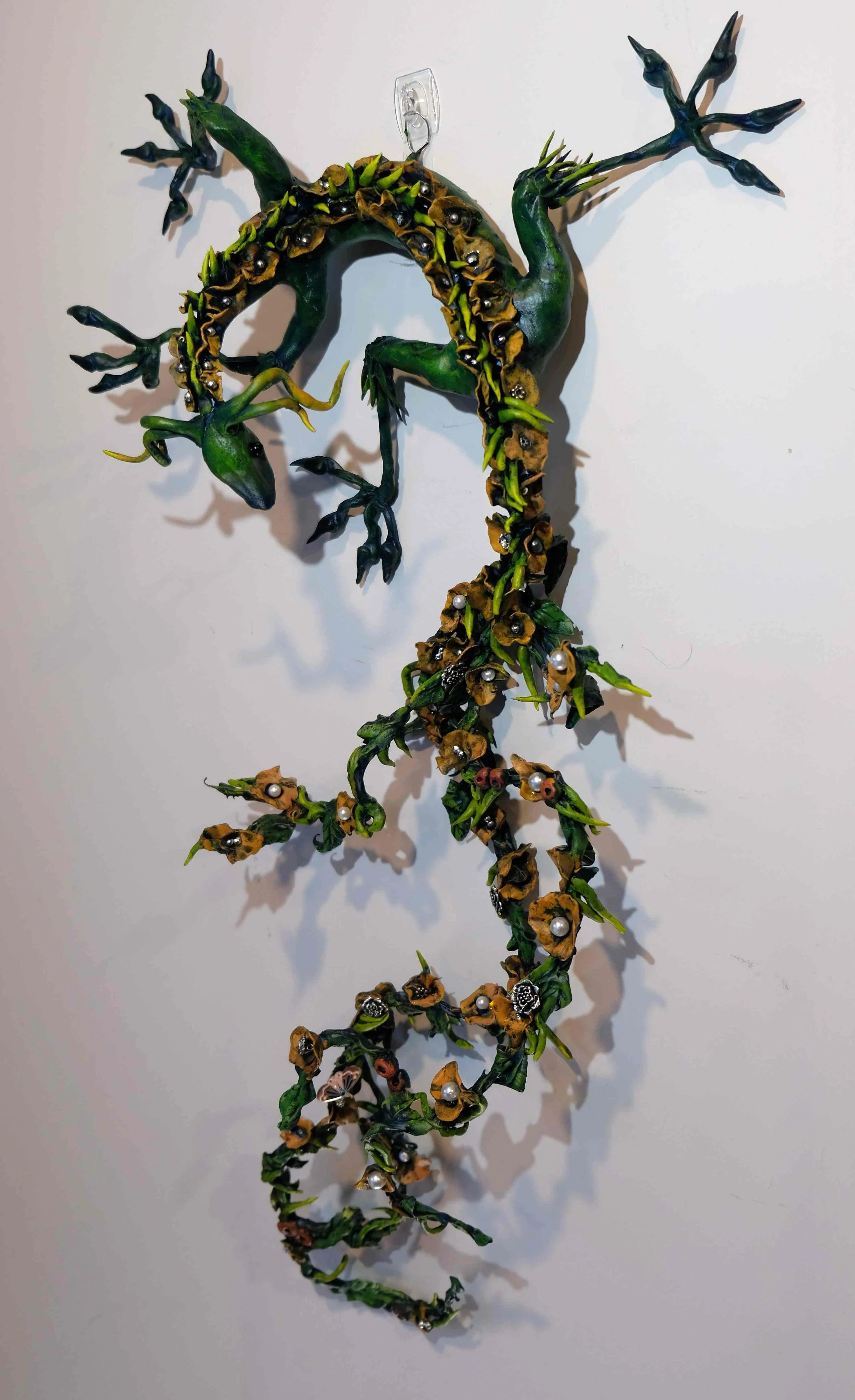 I was asked if I would like to create a few hanging pieces for a space at the Otago Art Society gallery to celebrate the Year of the Dragon. Right up my alley! Previously I have made dragons from papier Mache, wire, cloth and glue. I wondered if the more flexible air-dry clay I’m working with currently would be up to the task. Nothing like a good wondering to get inspired!