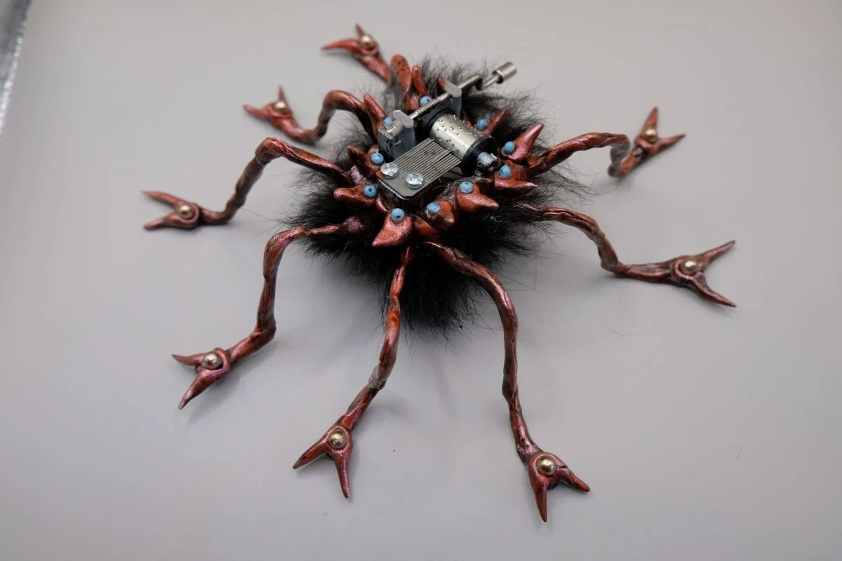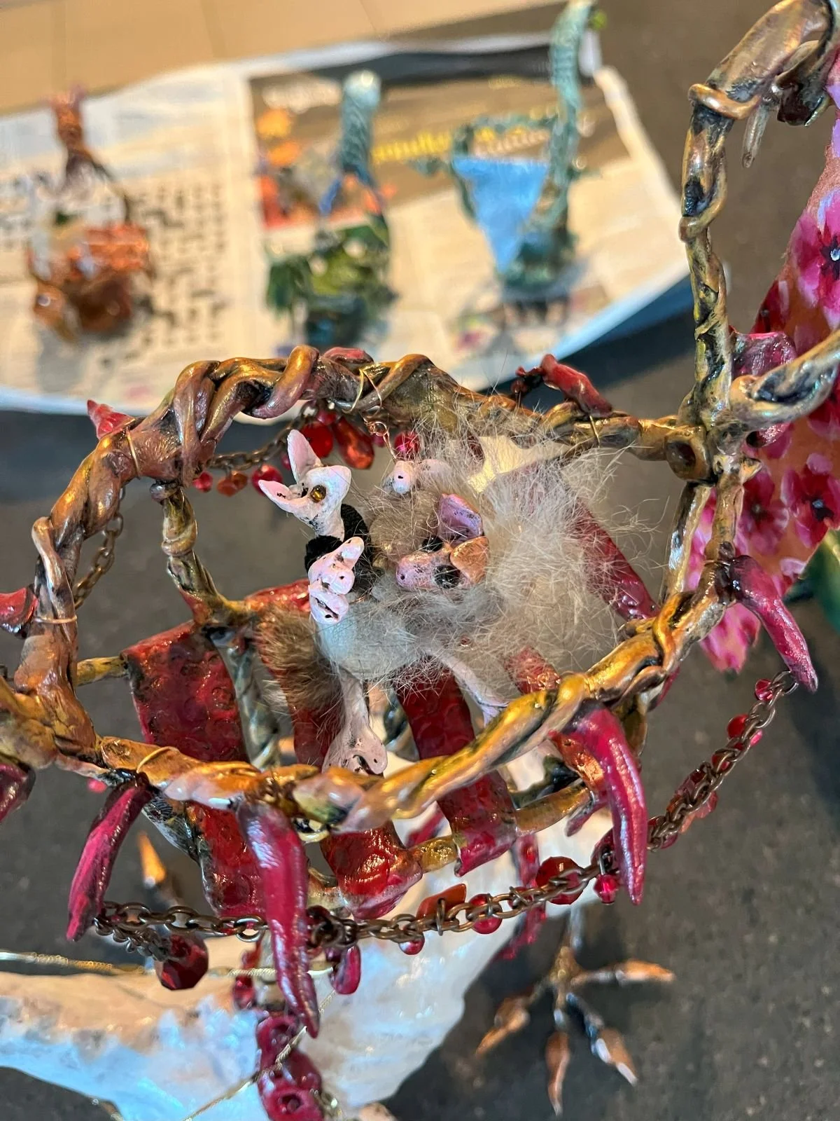 The public were great, I love that people came in, asked questions about the works, and enjoyed people smiling when they looked at the quirkier pieces. ‘Goodnight Spider’ came along as a piece the kids (and adults) to play with. Most art is ‘look don’t touch’ so it’s nice to include a touchable piece. (Goodnight Spider is made over a music box that plays ‘Stairway to Heaven”). It’s so ingrained to ‘not touch’ in art that when adults are intrigued by the materials, I really have to convince them that it’s ok to touch and see what it feels like.