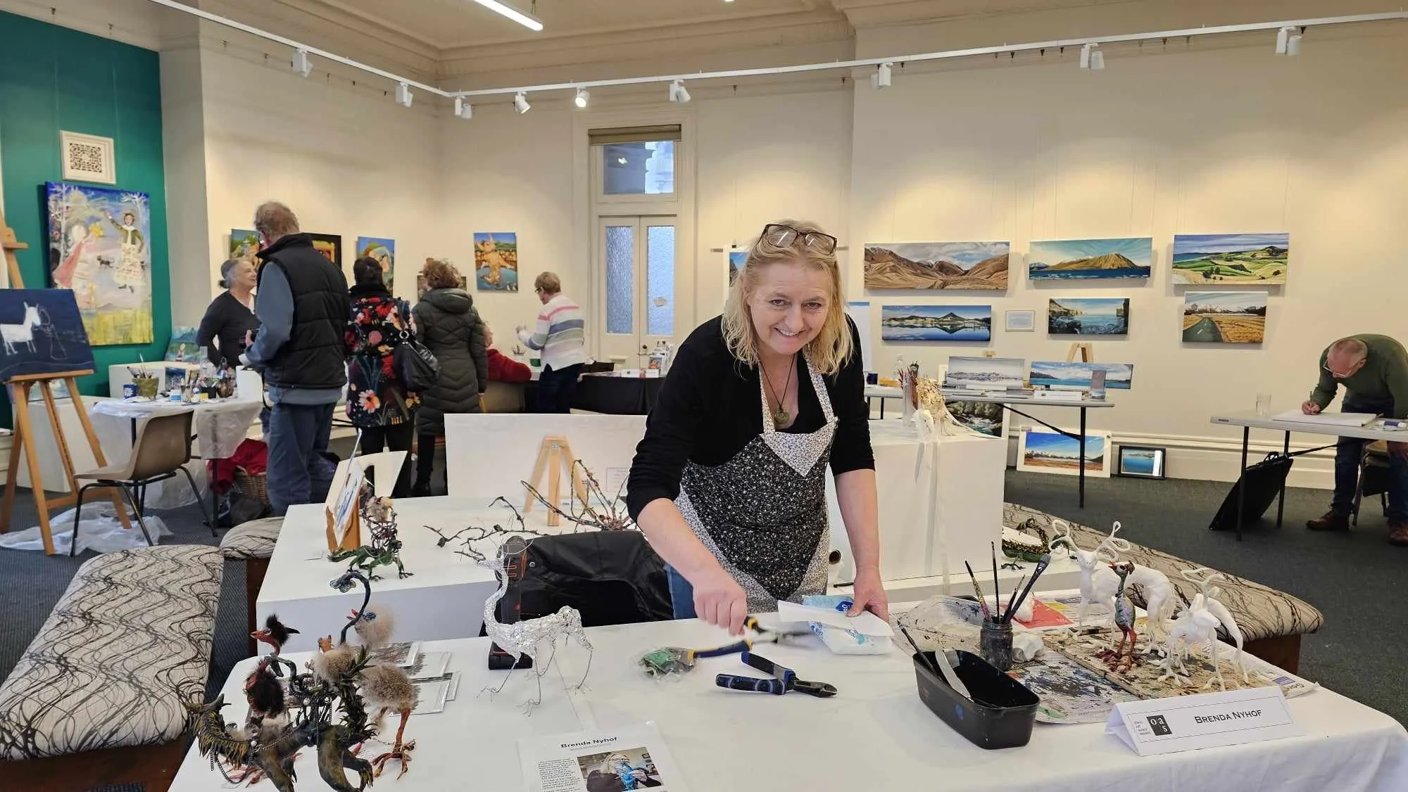 The Otago Art Society Demo Days is a week where a bunch of us artists set up and work in the gallery. Some artists will do a couple of days, others the full week. It’s such a beautiful gallery setting in Dunedin’s iconic railway building and there were lots of visitors coming along to see how we make our art. Organized this year by myself and good friend Lorna Allen, it went off beautifully. No mean feat trying to organize over 20 artists! (a bit like herding cats)-sorry artists, very friendly cats!