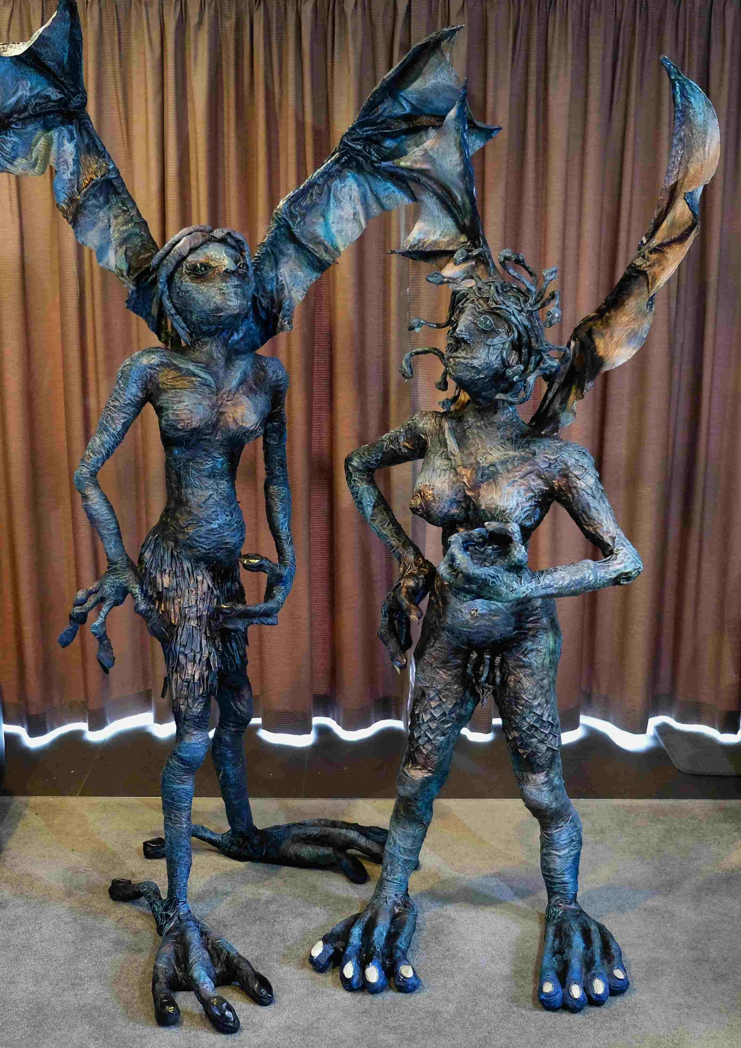Last week was quite busy. I had some work to do on my big girls, getting them ready for the Wellington art show. Birdwoman needed to have removable wings so she could better fit in the car, and I wanted to give her a new face and hair. I decided while I was at it to give Medusa a new head.