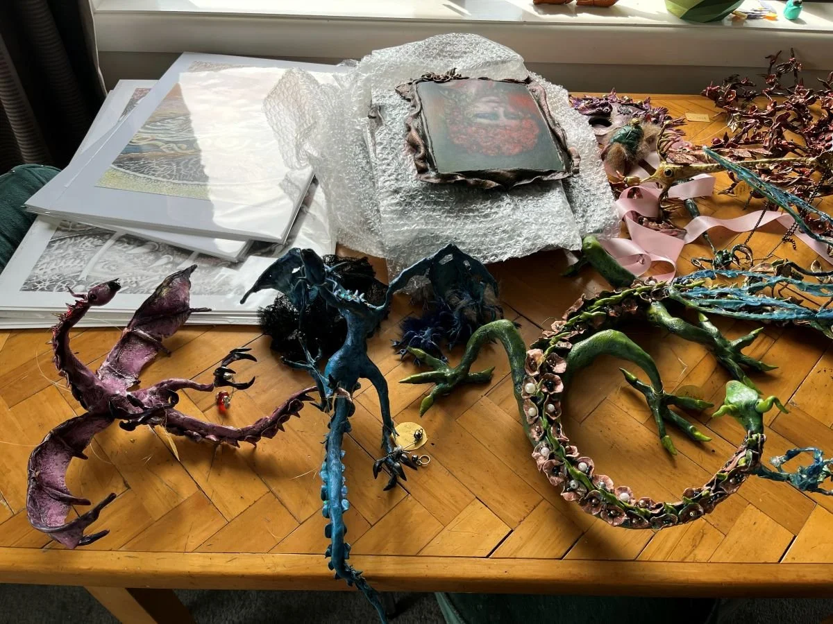 So, I had started making all the little bits I needed to get done when I got a call to say one of my dragons in the Otago Art Society had sold and someone else also wanted one. It’s funny how these things work. Sometimes a work will sit a while then all of a sudden it could have been sold a few times over in one day. I talk a lot about the creativity gods, but I’m sure the Art-Retail gods are just as mysterious! Maybe there’s a vibe sent out into the universe that all of a sudden makes an artwork desirable, who knows.