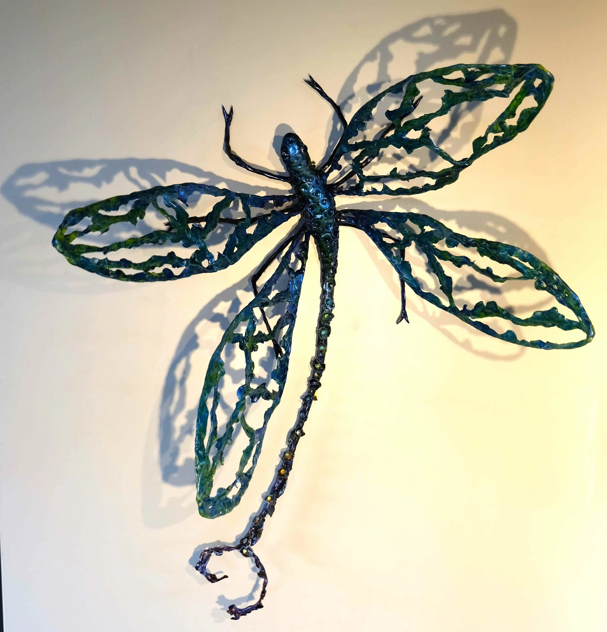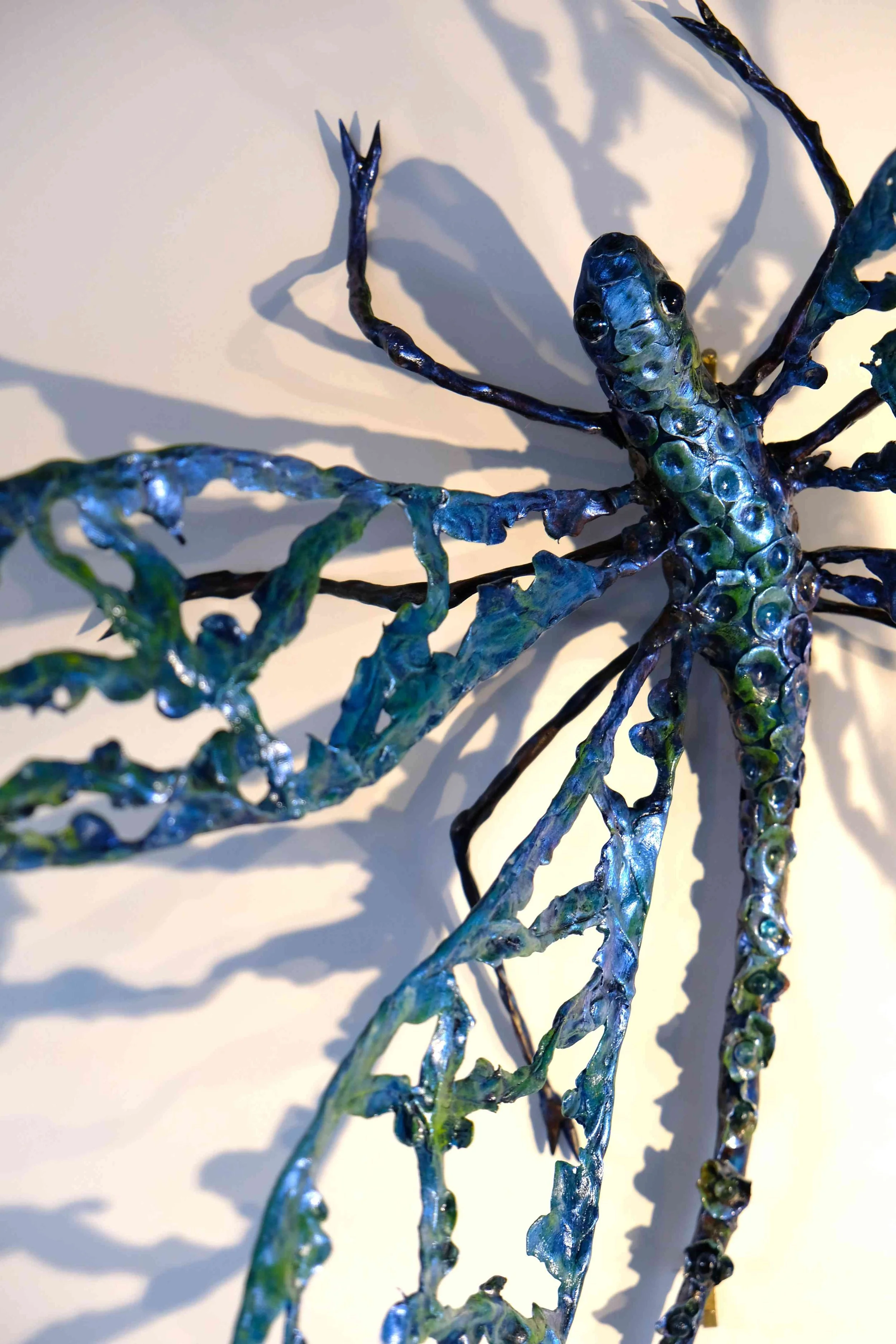 Well, I decided to make a dragonfly. Associated with change, transformation, adaptability and self-realisation, these insects are some of the fastest insects on earth reaching speeds of 50km. Fierce predators, they can hover, fly sideways, upside down, backwards and spin 360 degrees on axis. Awesome critters!